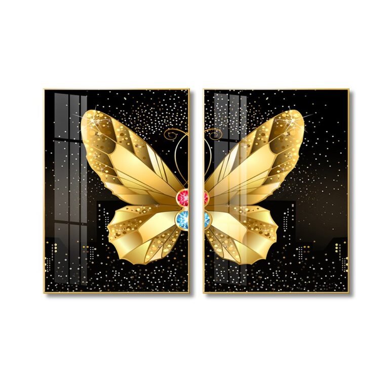 3 piece Golden Butterfly, Fish and Birds Crystal porcelain painting with Aluminum alloy frame and 5D Diamond