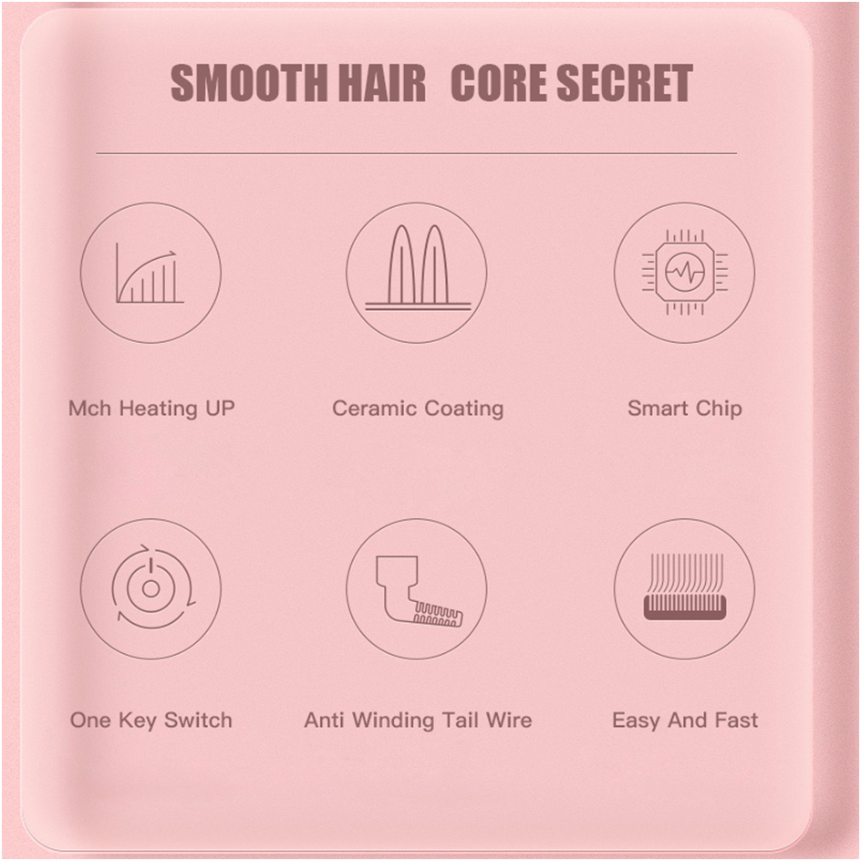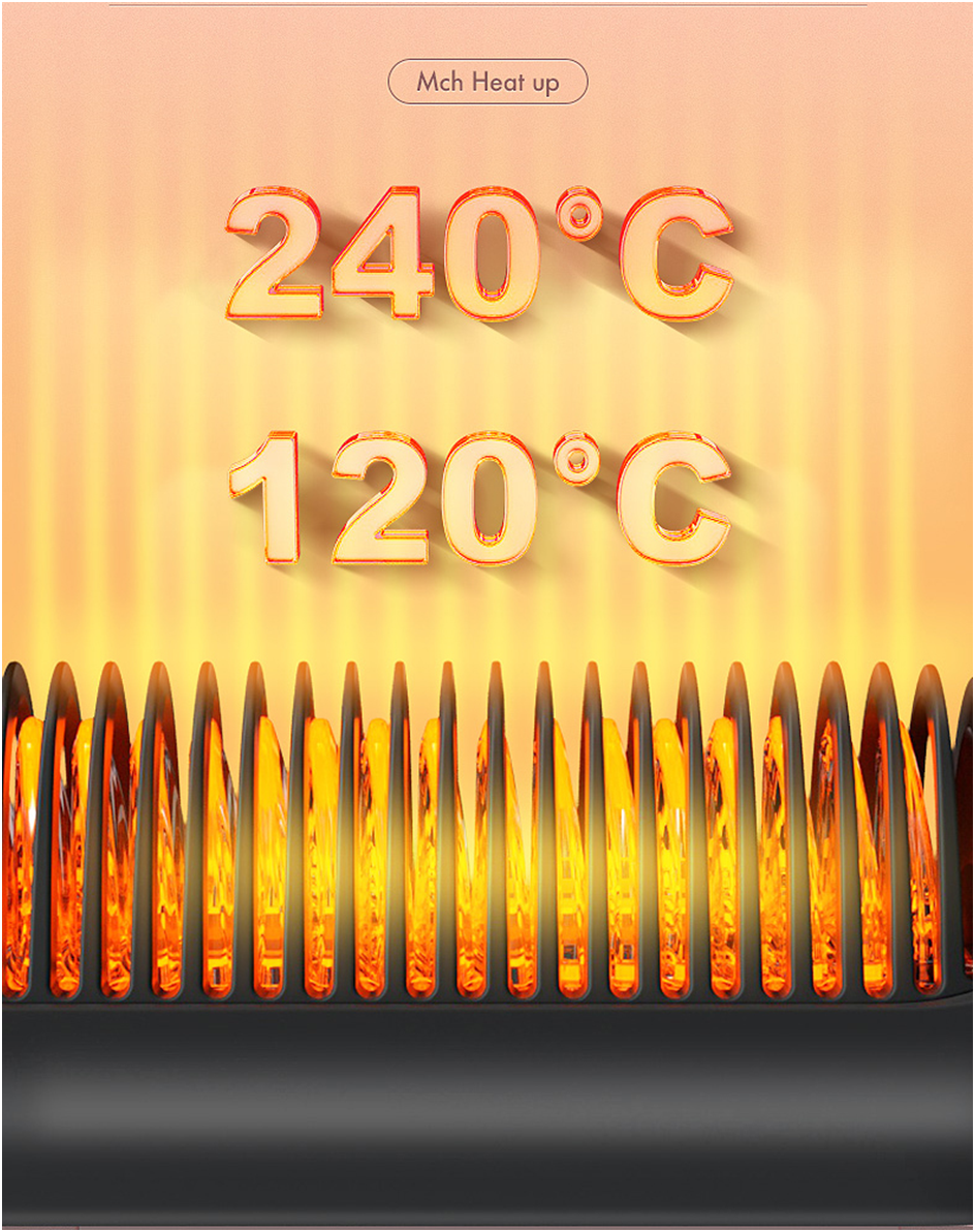 This latest design and innovative anti-scald straightening brush can be used as both a straightener and curler, operating at a constant temperature. Takes only 25 seconds to heat up, hence getting your hair done in next to no time. The ceramic heating plate gets your hair straight, smooth and even creates a sense of volume. The straightening brush comes with 5 temperature settings from 120°-240°C. Chose the setting that is most suitable for your hair type. Makes straightening or curling a breeze with its anti-scalding comb which will not burn even whenin contact with your scalp.