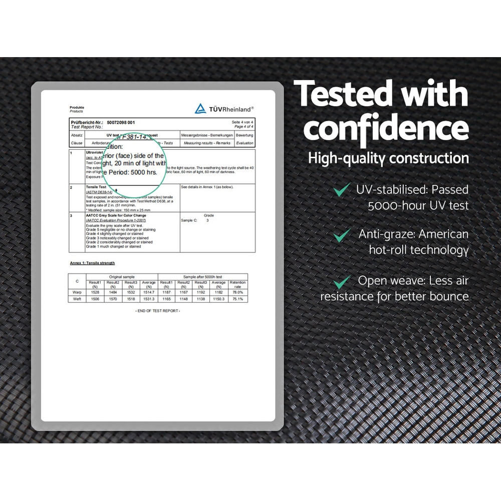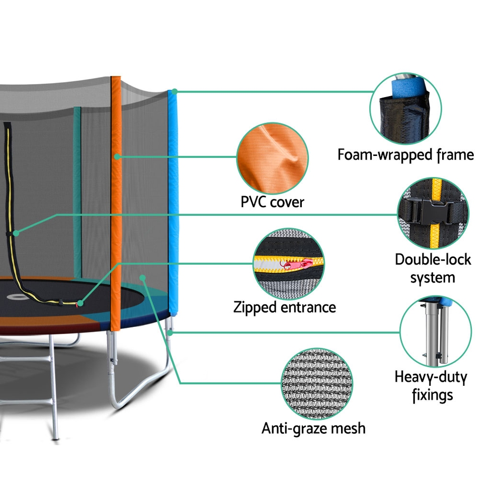 Bounce to your heart’s content with our Trampoline. With its superior bounce characteristics featuring 48-piece triple rate springs, the 8-foot trampoline enables safe and durable bouncing with no worries. The heavy-gauge steel framework is designed to handle all robust play and is UV-tested for quality and reliability. Other great features include 6 posts for strong support, 20mm thick padding, anti-graze mat, safety netting and a double-lock zip-and-clip entry. So jump to it and order our trampoline today.