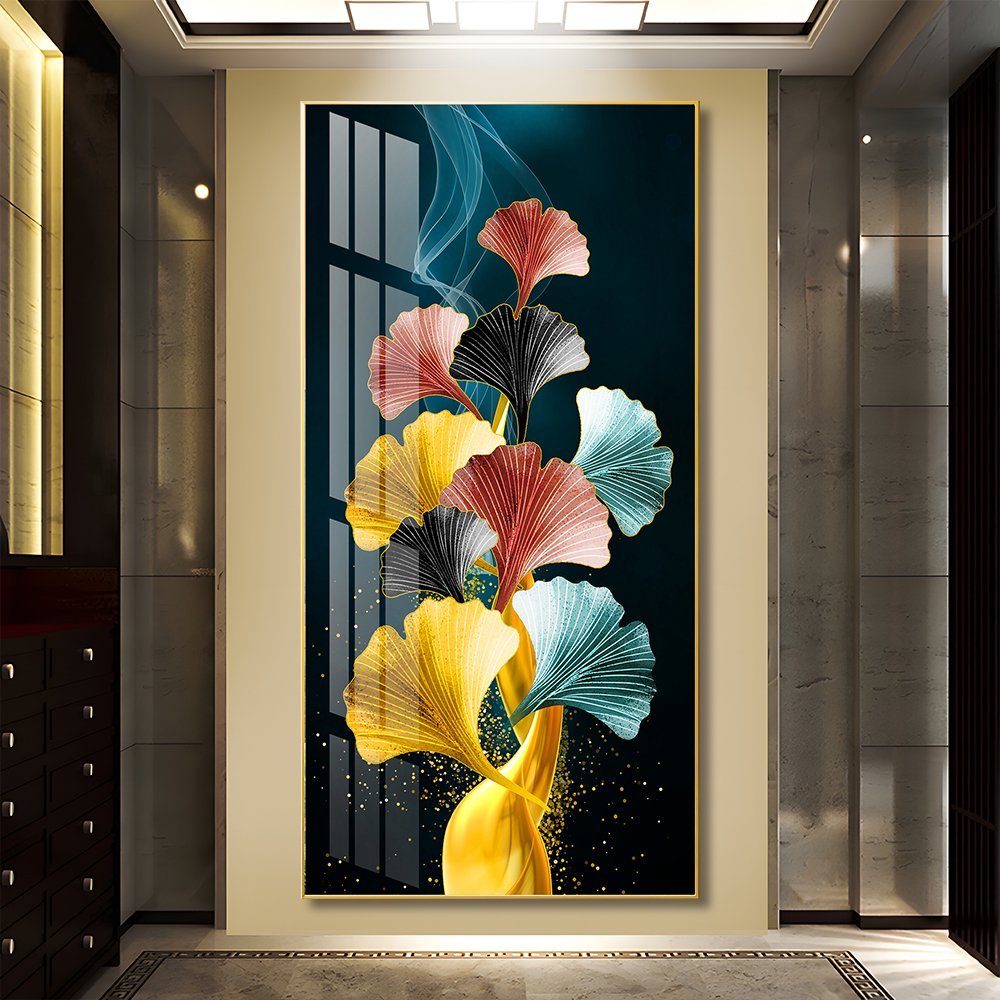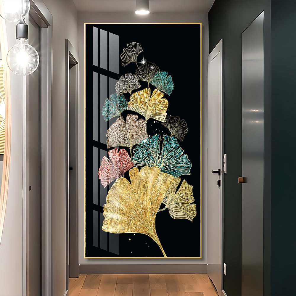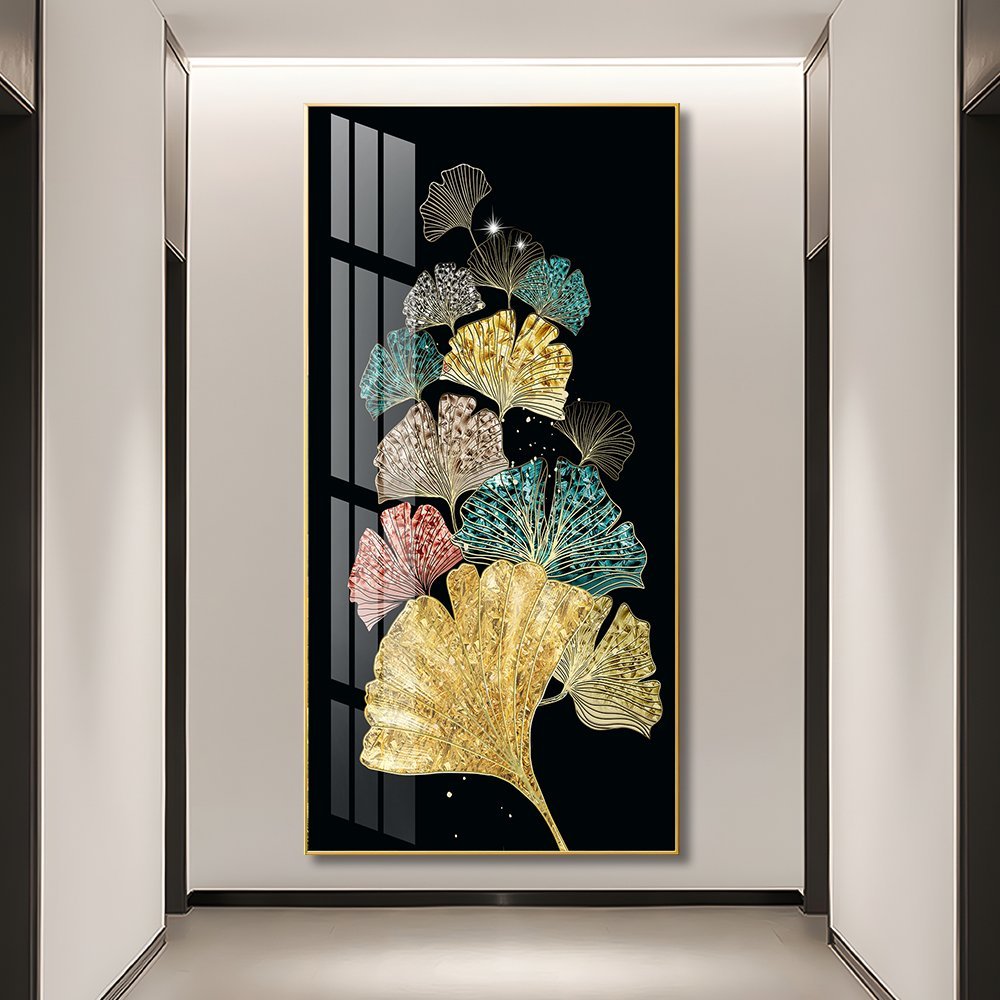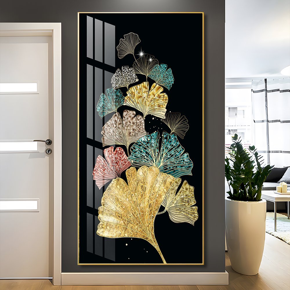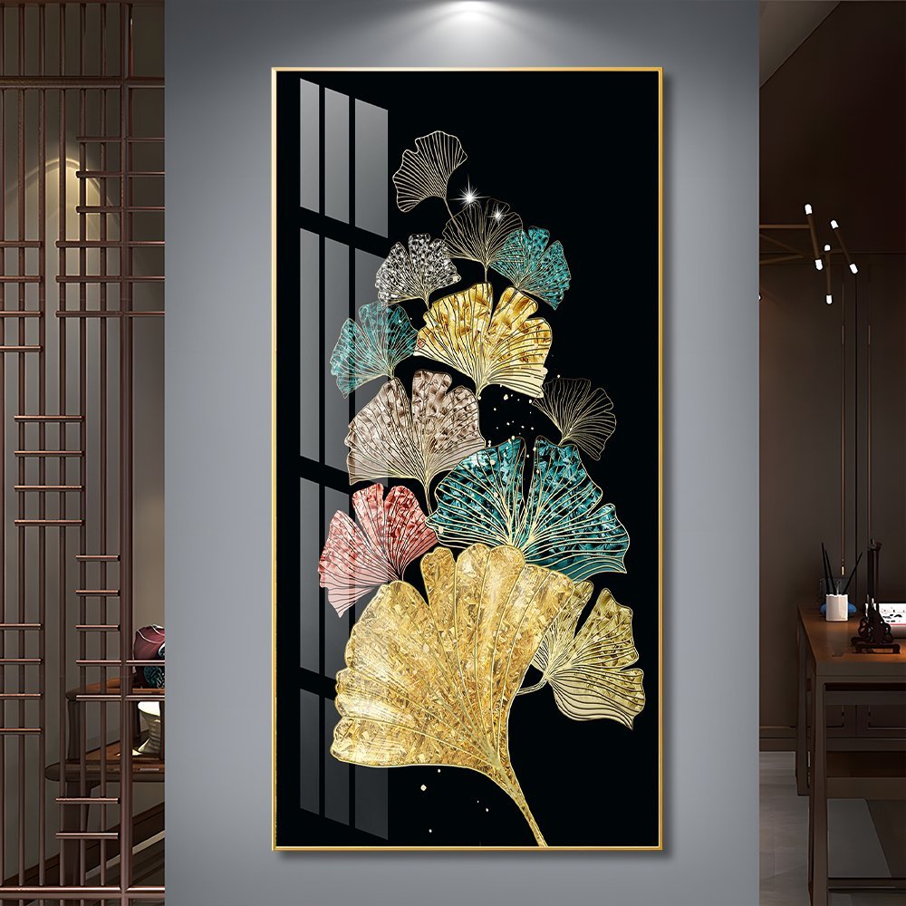 Adoring and colourful Ginkgo Leaf Crystal porcelain painting Aluminum alloy frame with 5D Diamond