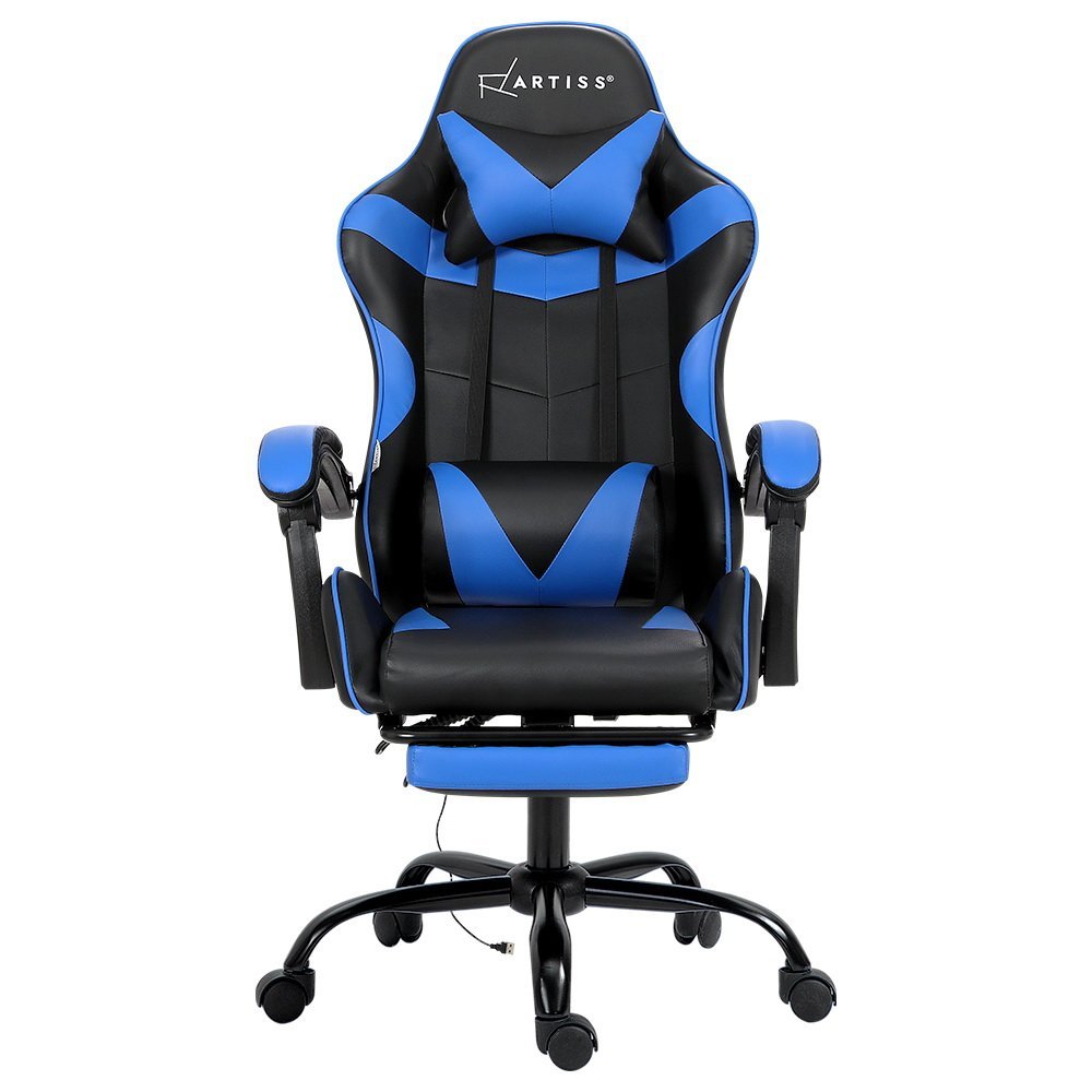 Artiss 2 Point Massage Gaming Office Chair Footrest Blue