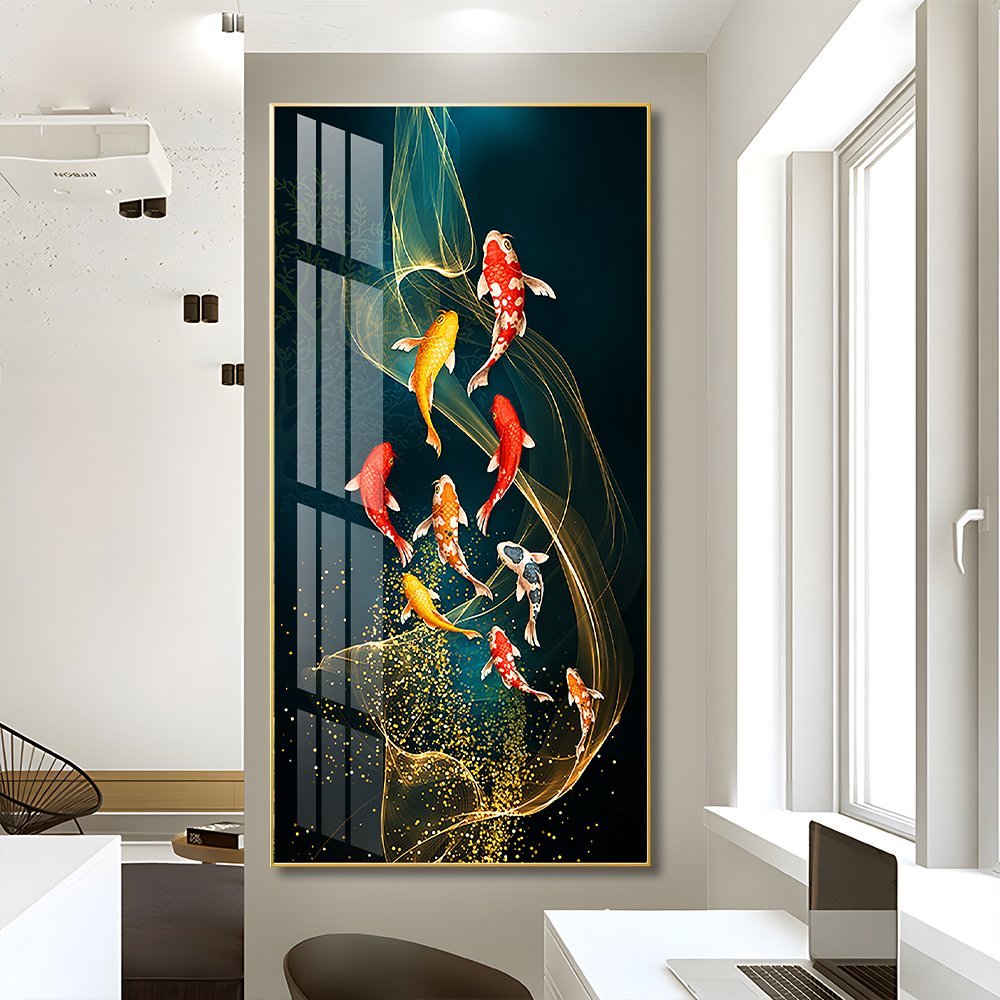 Colourful Koi Fish Crystal porcelain painting Aluminum alloy frame with 5D Diamond
