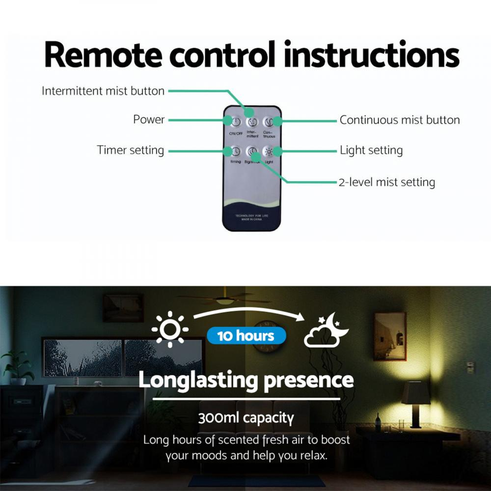 With its unique light wood grain finish and a zen-inspired shape vase, the Diffuser actually performs four functions in one device: humidifier, purifier, night light and aromatherapy. It uses electronic frequencies to create vibration in water. The resulting mist is then carried to the top where it absorbs the essential oils to purify the air and remove unwanted odours. At the same time, you experienced a scented aroma to calm and revitalize your body.