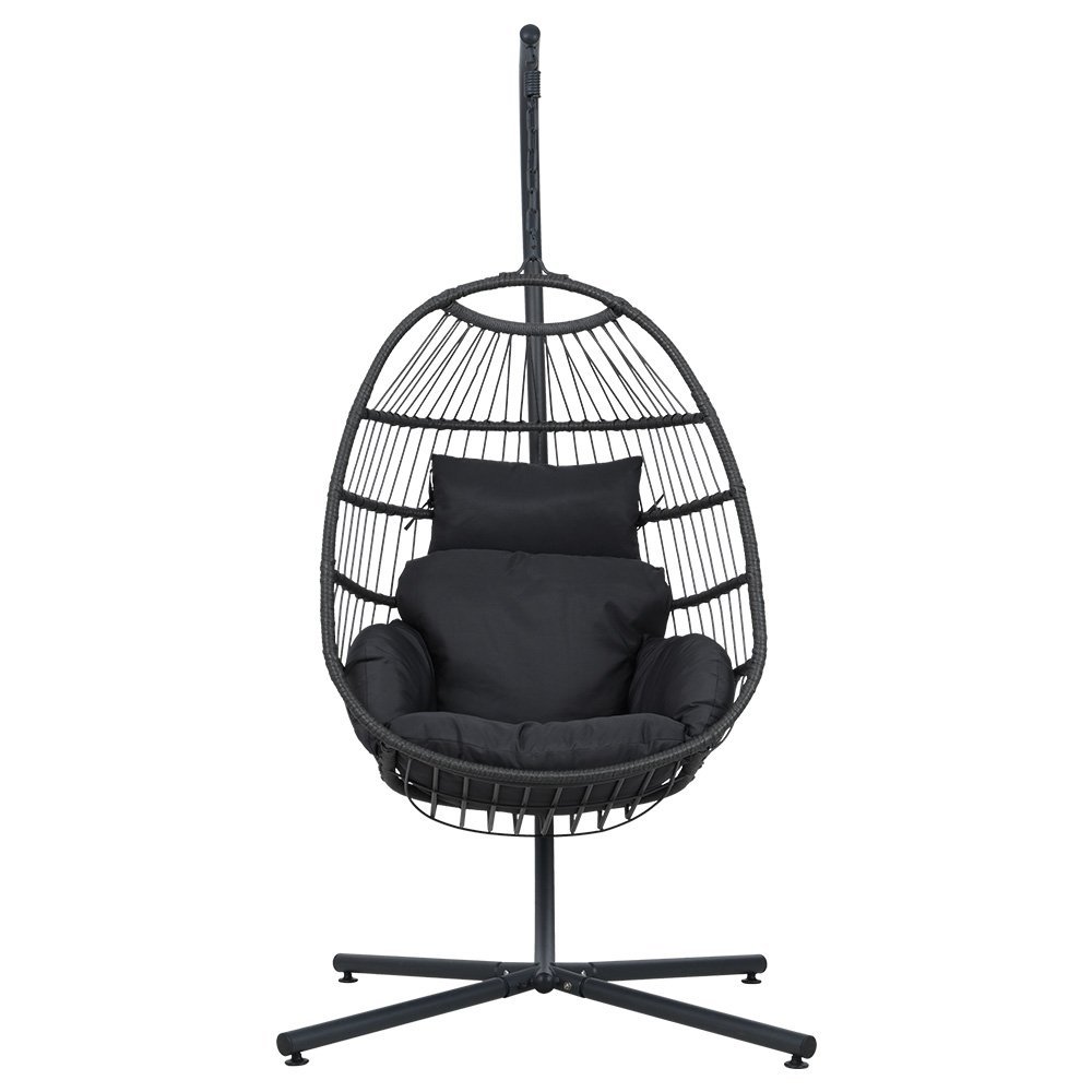 Gardeon Outdoor Egg Swing Chair Hanging Chair Wicker Rope Pod Stand Foldable Grey