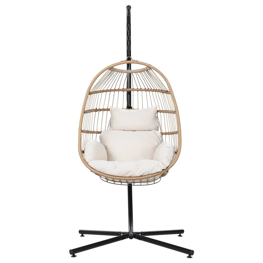 Gardeon Outdoor Egg Swing Chair Wicker Rope Furniture Pod Stand Foldable Yellow