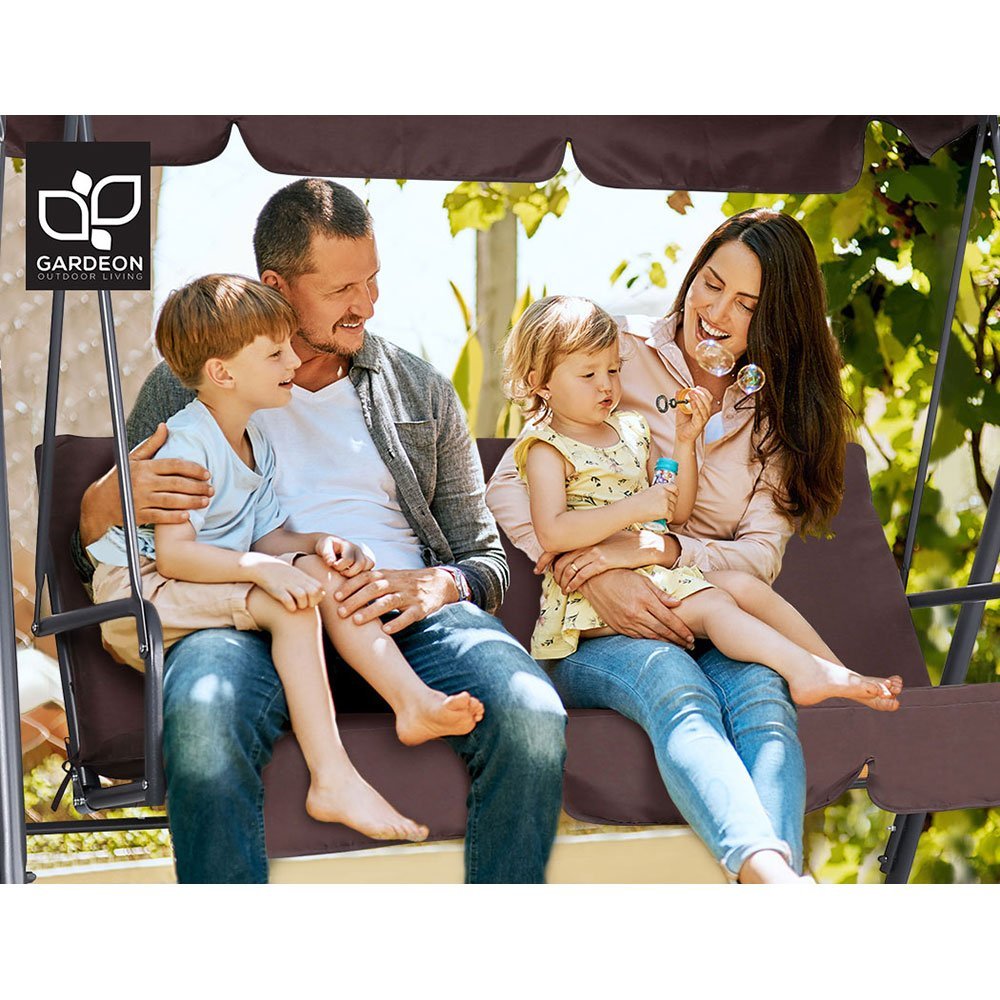 Gardeon Outdoor Swing Chair Garden Chair Bench Furniture Canopy 3 Seater Brown