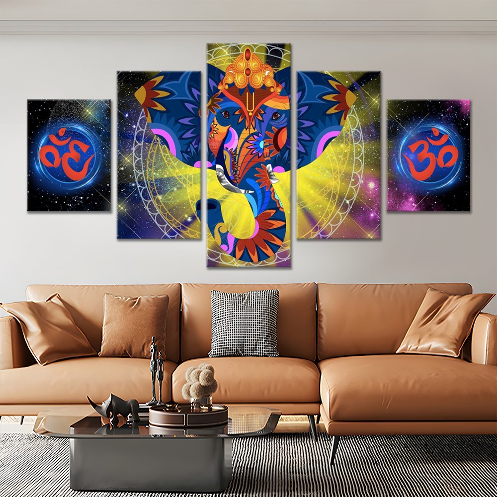 Lord Gunesha 5 piece canvas wall art Vastu Shastra; Hinduism