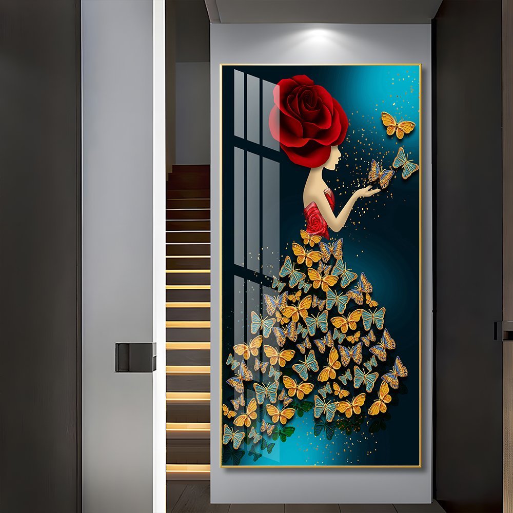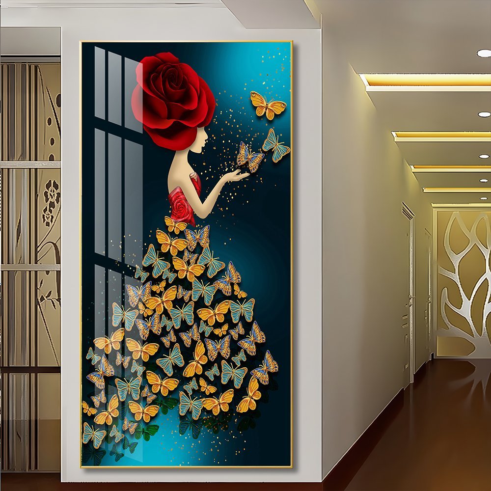 Loving Butterfly Flower Girl Abstract Crystal porcelain painting Aluminum alloy frame with 5D Diamond