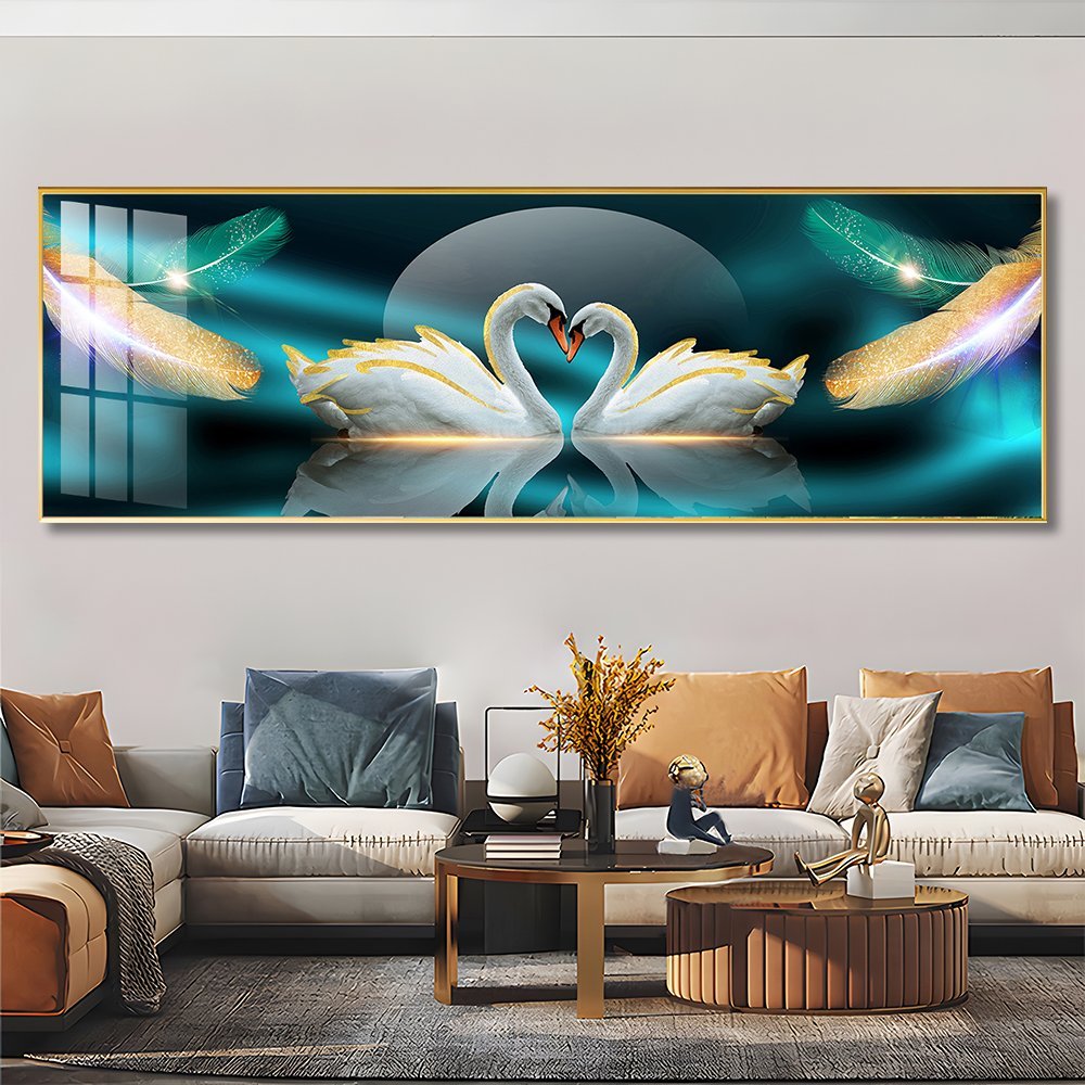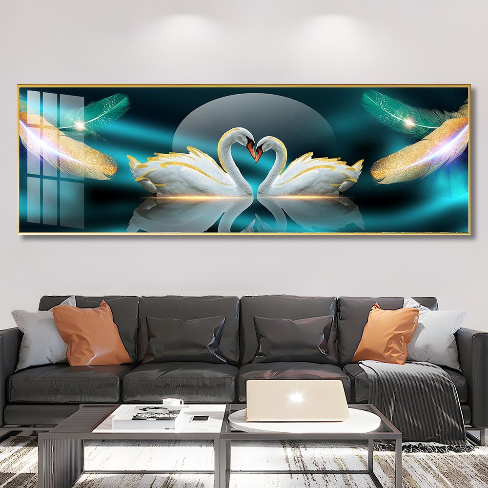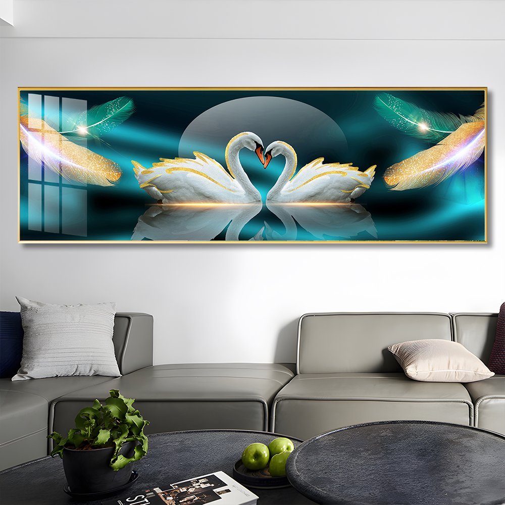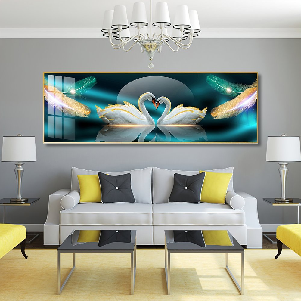 Loving Swan Crystal porcelain painting Aluminum alloy frame with 5D Diamond