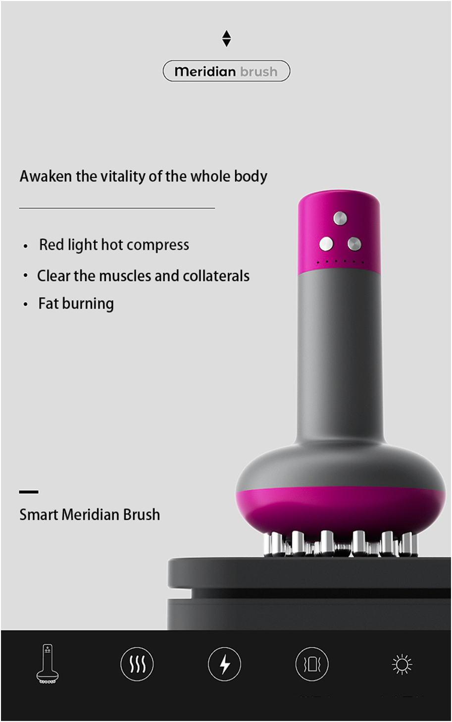 Smart Meridian Massager with 6-speed micro-current and vibration. Also features red light hot compress and magnetic thermal moxibustion. It’s the all in one package you need.