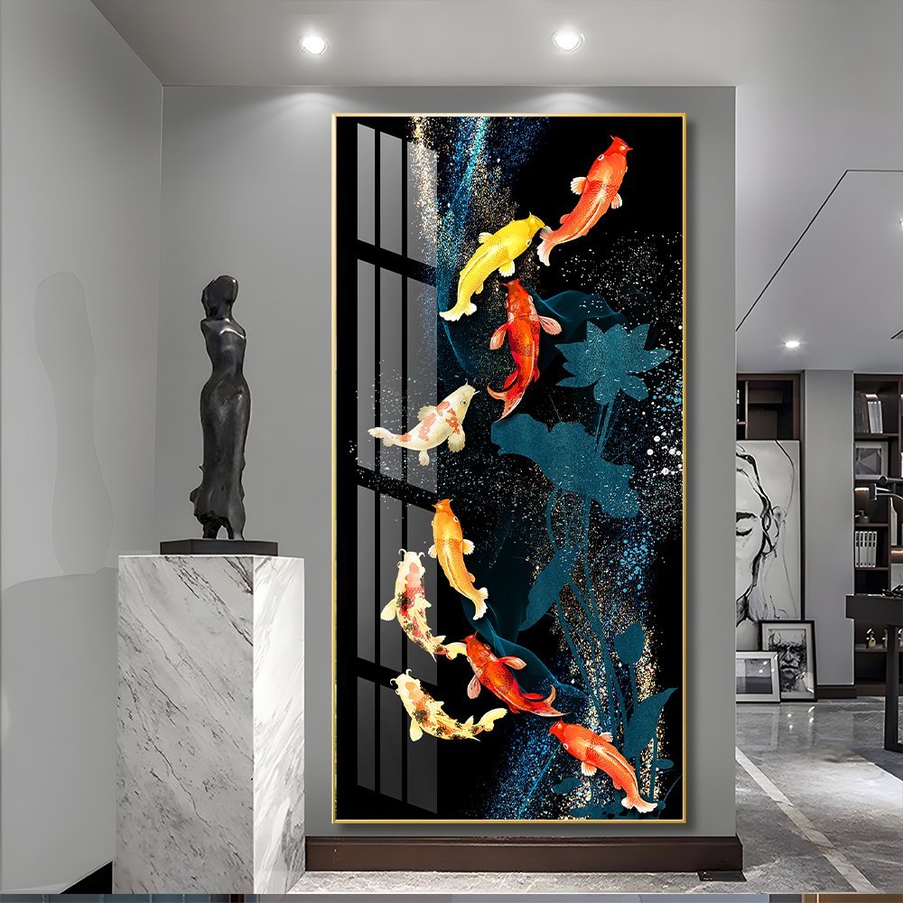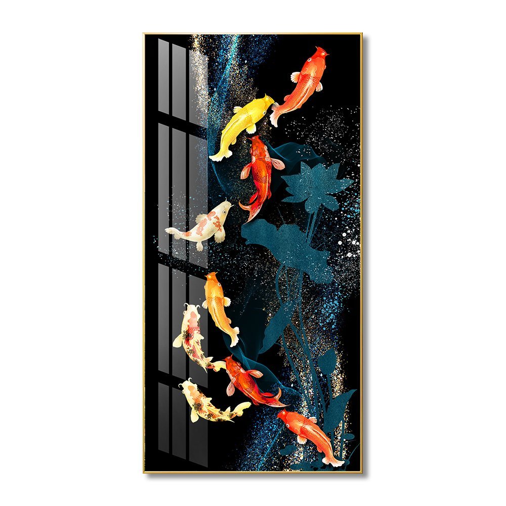9 Colourful Koi Fish Crystal porcelain painting Aluminum alloy frame with 5D Diamond
