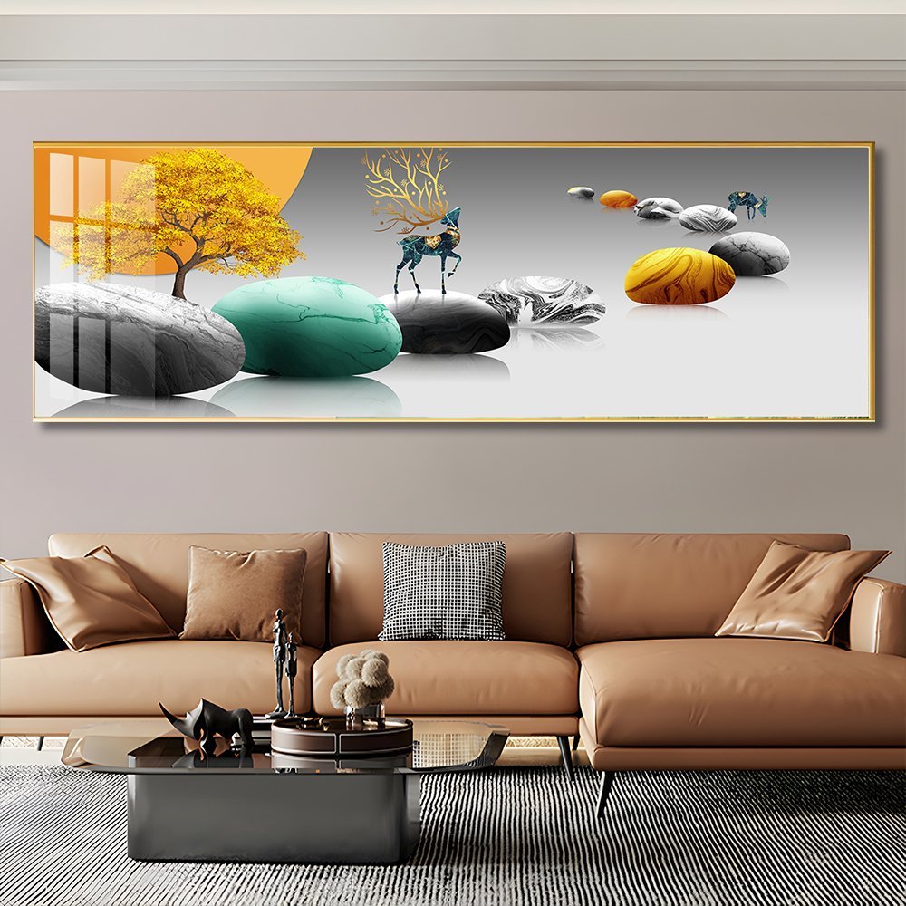 Precious Stones, Tree and Deer Abstract Art Crystal porcelain painting Aluminum alloy frame with 5D Diamond