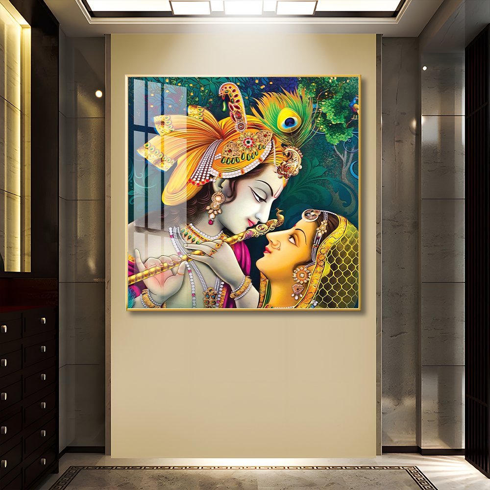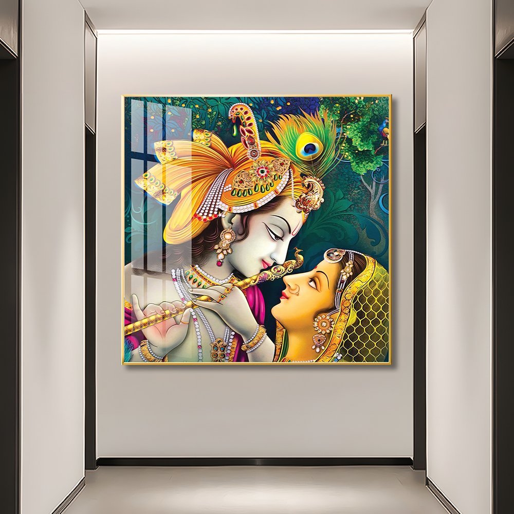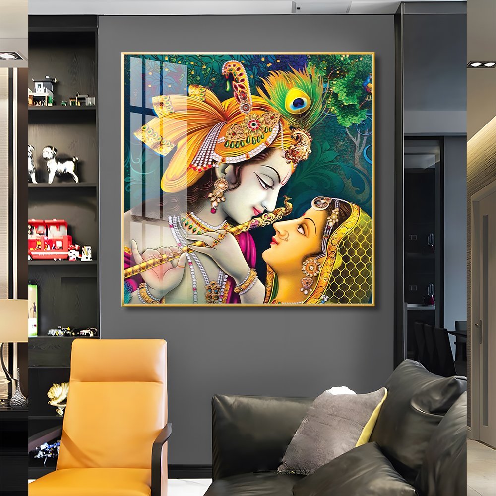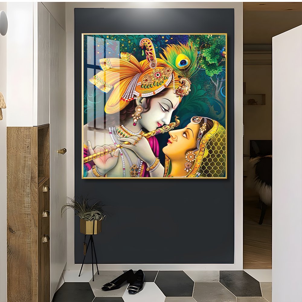 Radha Krishna Hindu Vastu Shastra Crystal Porcelain painting with Aluminium Alloy Frame