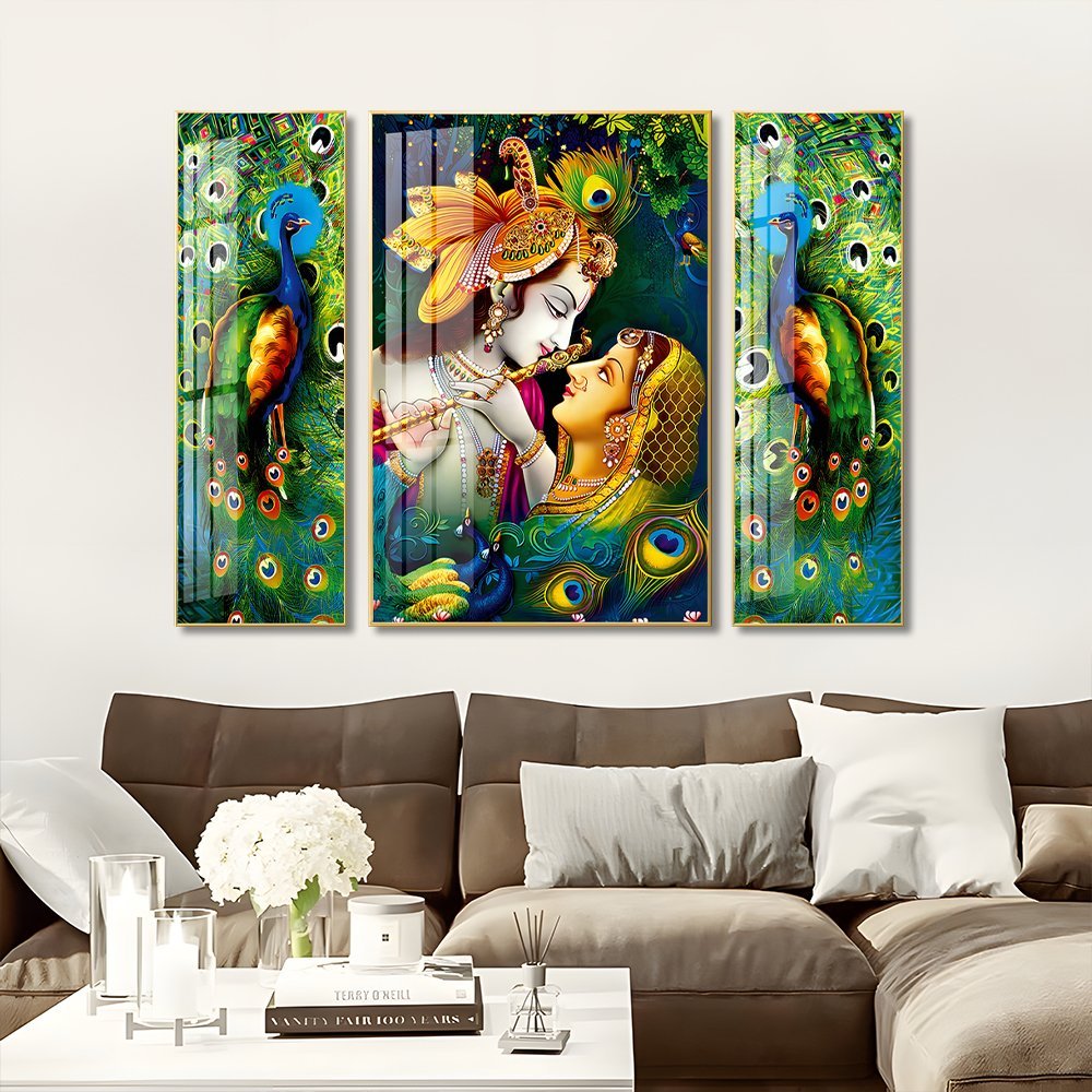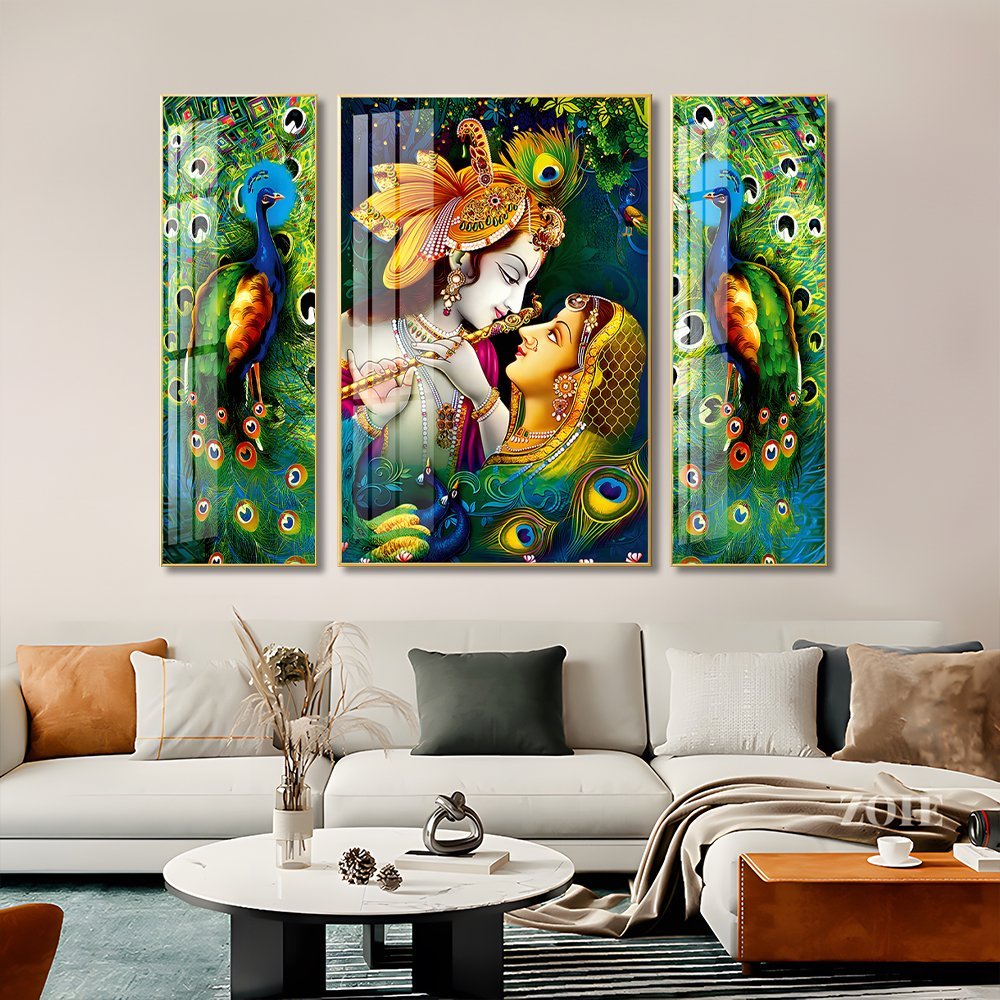 Radha Krishna Hindu Vastu Shastra Crystal Porcelain painting with Aluminium Alloy Frame