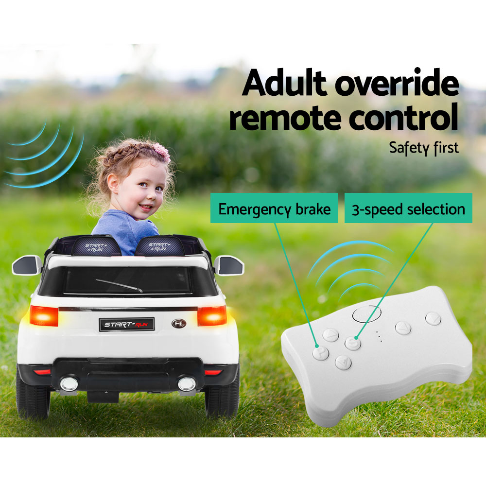 Our ride on car is sure to impress your little driver with its looks, performance, and charisma. It boasts an impressive and exquisite two-tone design, brilliant lacquer finish accentuating its sculpted lines and a solid build. It has powerful twin motors for exhilarating performance and a thrilling ride, 4-wheel suspension for increased stability and comfortable ride, premium anti-slip tyres for a smooth ride and a spacious seat with a safety belt for safety and comfort. Plus, it has stylish working doors with a safety lock and dynamic headlights for illuminating presence and reverse lights for safety. Furthermore, it has a dashboard with functions like MP3 connect, power switch, accelerator pedal, horn, and forward/reverse switch for a real-like driving experience like never before. The remote-control function and EN71 Standard Safety of Toys certification ensure the safety of the child.
