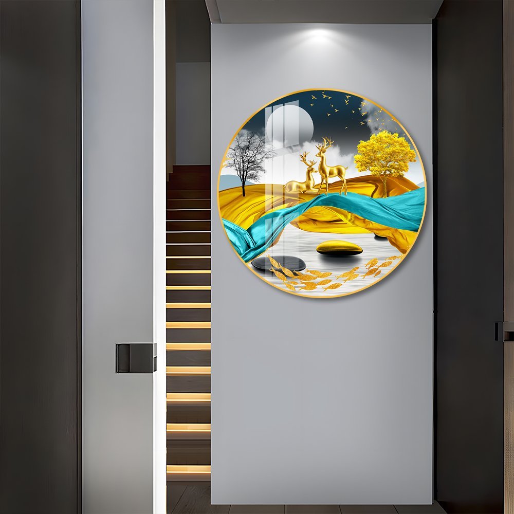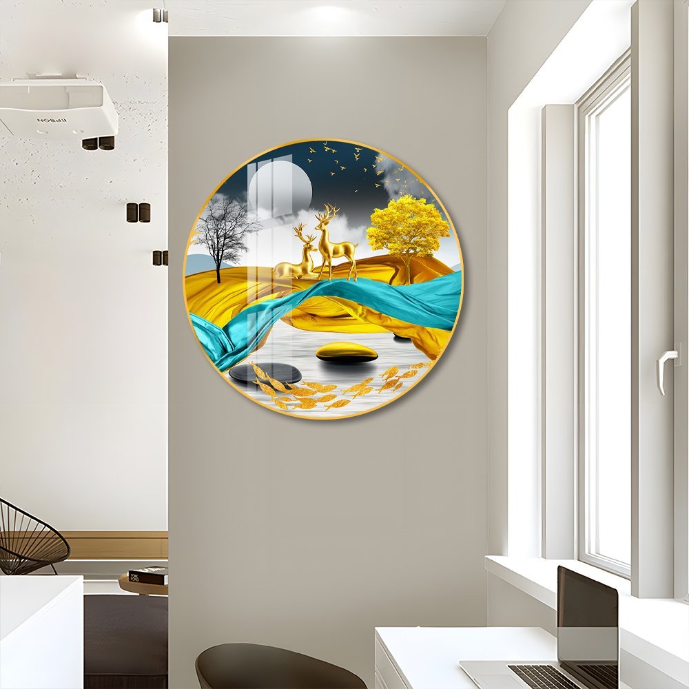 The Golden Deer Crystal porcelain painting Aluminum alloy frame with 5D Diamond